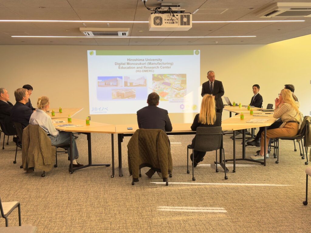 2025年11月26日、リトアニアのカウナス工科大学から電気電子工学部のヴィーダス ラウドニス教授他5名が、デジタルものづくり教育研究センターを来訪されました。 当日は林センター長からのセンター概要説明のあと、施設見学を実施し、産学連携の活動状況や社会実装に向けた取組について積極的な意見交換を行いました。